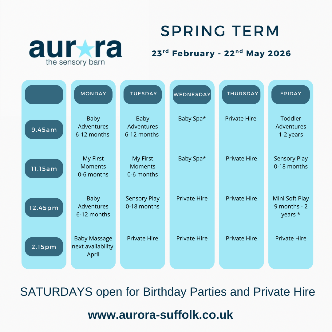 Baby Spa runs one off PAYG sessions and will be running on the following days: 14th & 28th January and 11th & 25th February